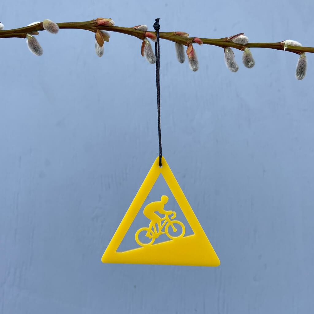 Ornamentet afspejler en cykelrytter op af en bakke, et minde fra cykelturen du var på med gutterne eller en cykeltur ned gennem Europa eller op af Kiddesvej i Vejle. Et enkelt og stilrent ornament, der er ideel i den moderne indretning.