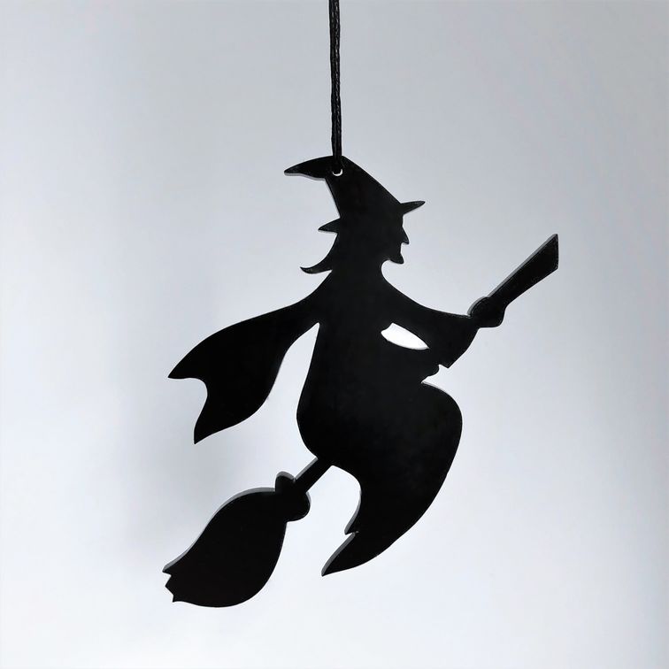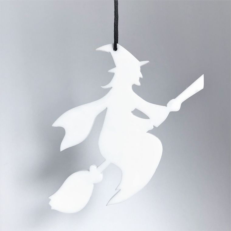 Ornament med enkelt og stilrent udtryk, der er ideél til den moderne bolig. En heks på kost skaber den helt rigtige stemning til Halloween, Skt Hans eller Fastelavn. Er smuk i vinduet, på en gren, om en lysestage, kun fantasien sætter grænser. Fås i farven hvid og sort.