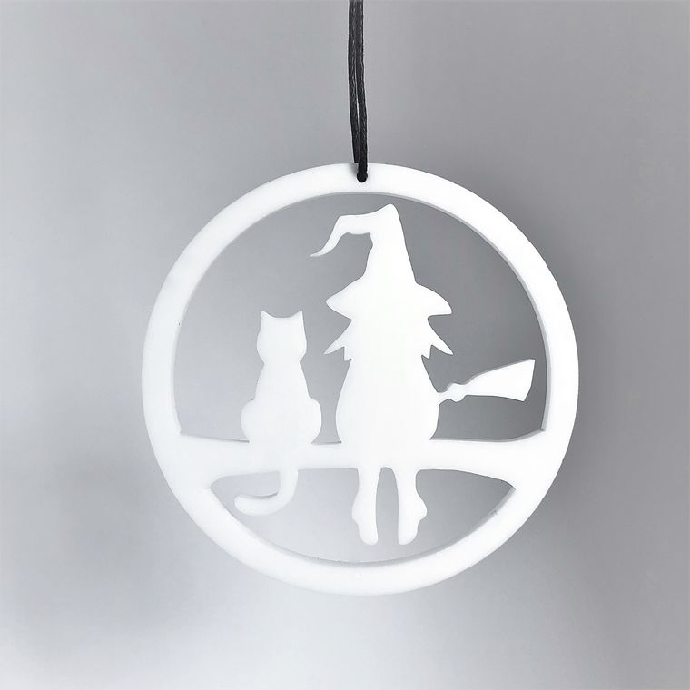 Ornament med enkelt og stilrent udtryk, der er ideél til den moderne bolig. En heks med Kat skaber den helt rigtige stemning til Halloween eller Fastelavn. Er smuk i vinduet, på en gren, om en lysestage, kun fantasien sætter grænser. Fås i farven hvid og sort.