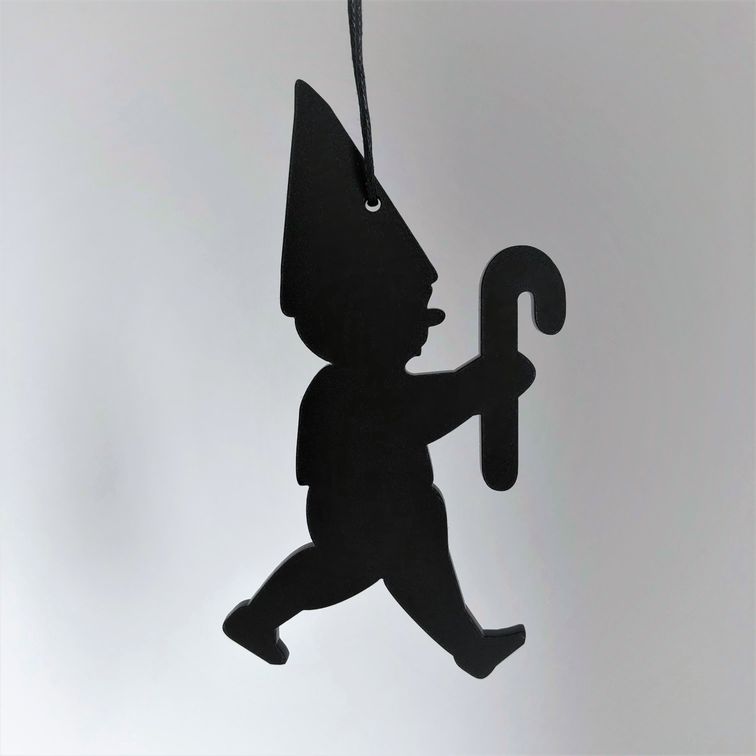 Ornament med enkelt og stilrent udtryk, der er ideél til den moderne jul. Ornamentet er udformet som en klassisk sød julenisse med sukkerstok. Er smuk på juletræet, i vinduet, en gren, om en lysestage, kun fantasien sætter grænser. Fås i farven hvid, sort og rød.