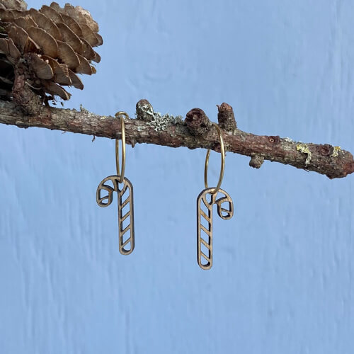 Enkle øreringe med slikstokke, sat på enten sterling sølv eller forgyldt sterling sølv.