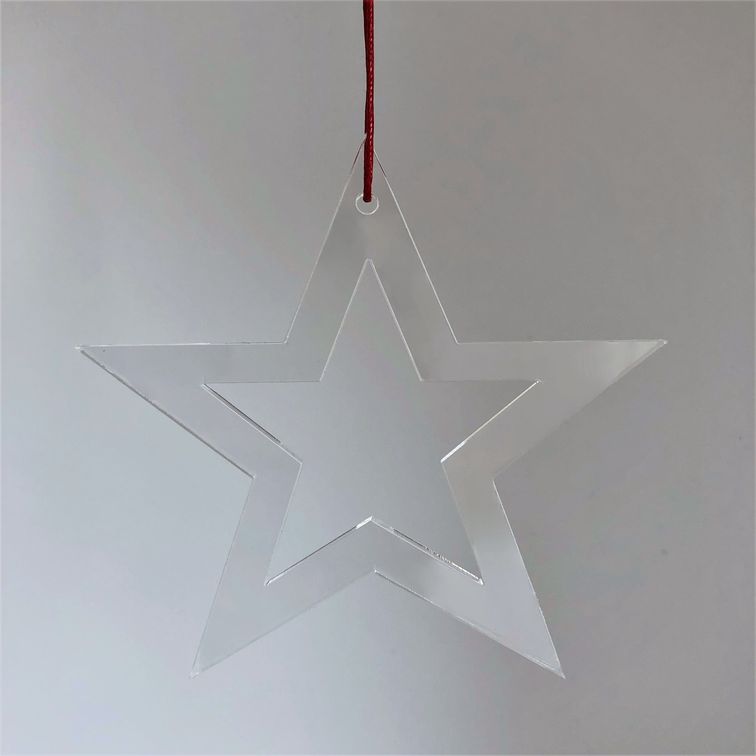 Ornament med enkelt og stilrent udtryk, der er ideél til den moderne julebolig. Ornamentet er udformet som en moderne stjerne med kant. Er smuk på juletræet, i vinduet, en gren, om en lysestage, kun fantasien sætter grænser. Fås i farven klar/rød.
