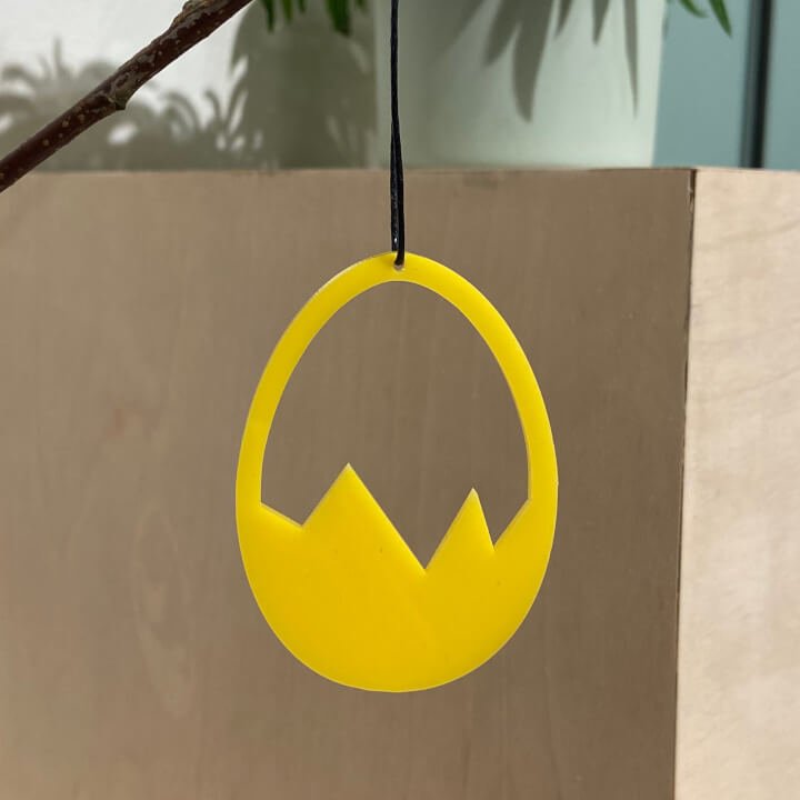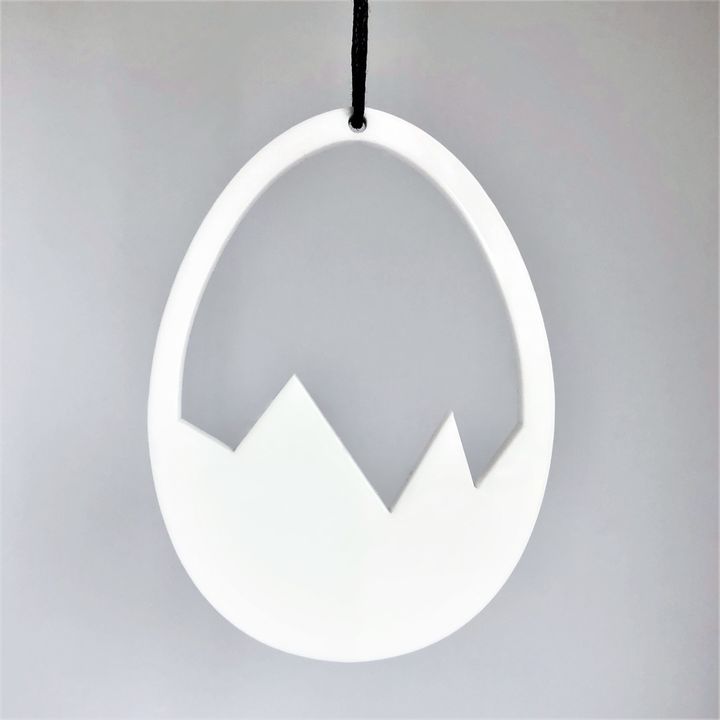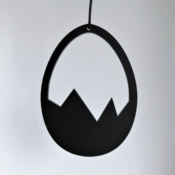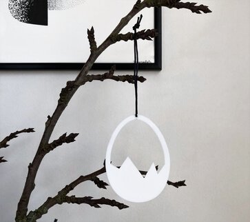 Smukt påskeornament med et enkelt og stilrent udtryk. Ornamentet har et minimalistisk og moderne design. Er smuk i vinduet, på en gren, om en lysestage, kun fantasien sætter grænser. Fås i hvid, sort og gul.