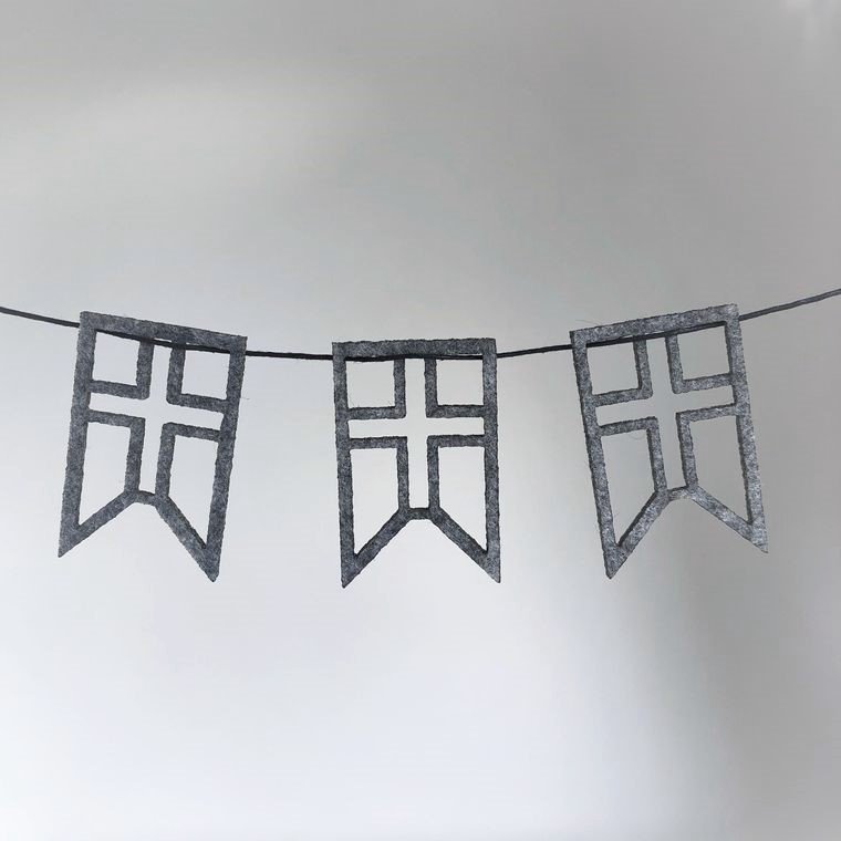 Enkel og stilren flagranke, der er ideel til fødselsdag eller andre højtider. Oplagt til udsmykning ved højtider, på juletræet og fødselsdagsbordet, kun fantasien sætter grænser. Fås i farverne rød og grå.