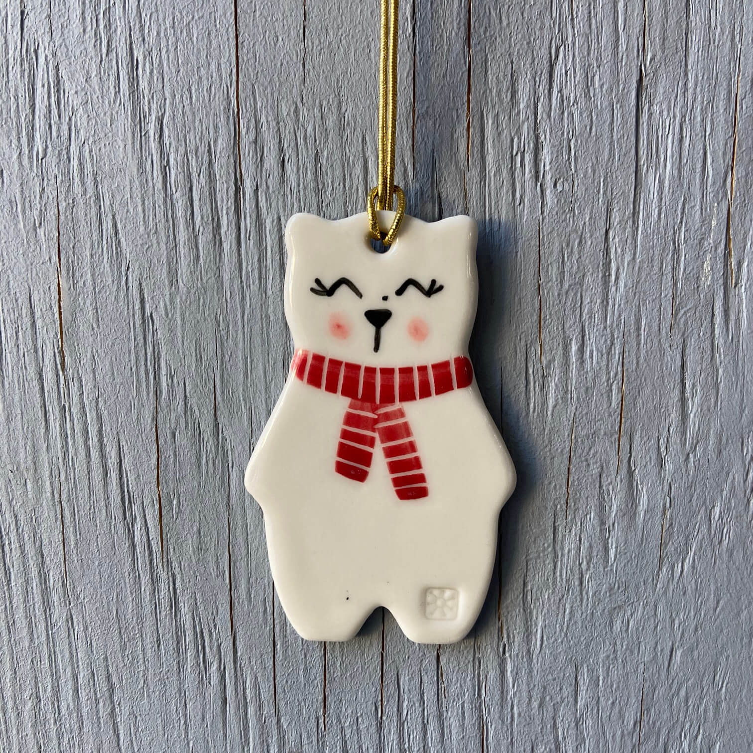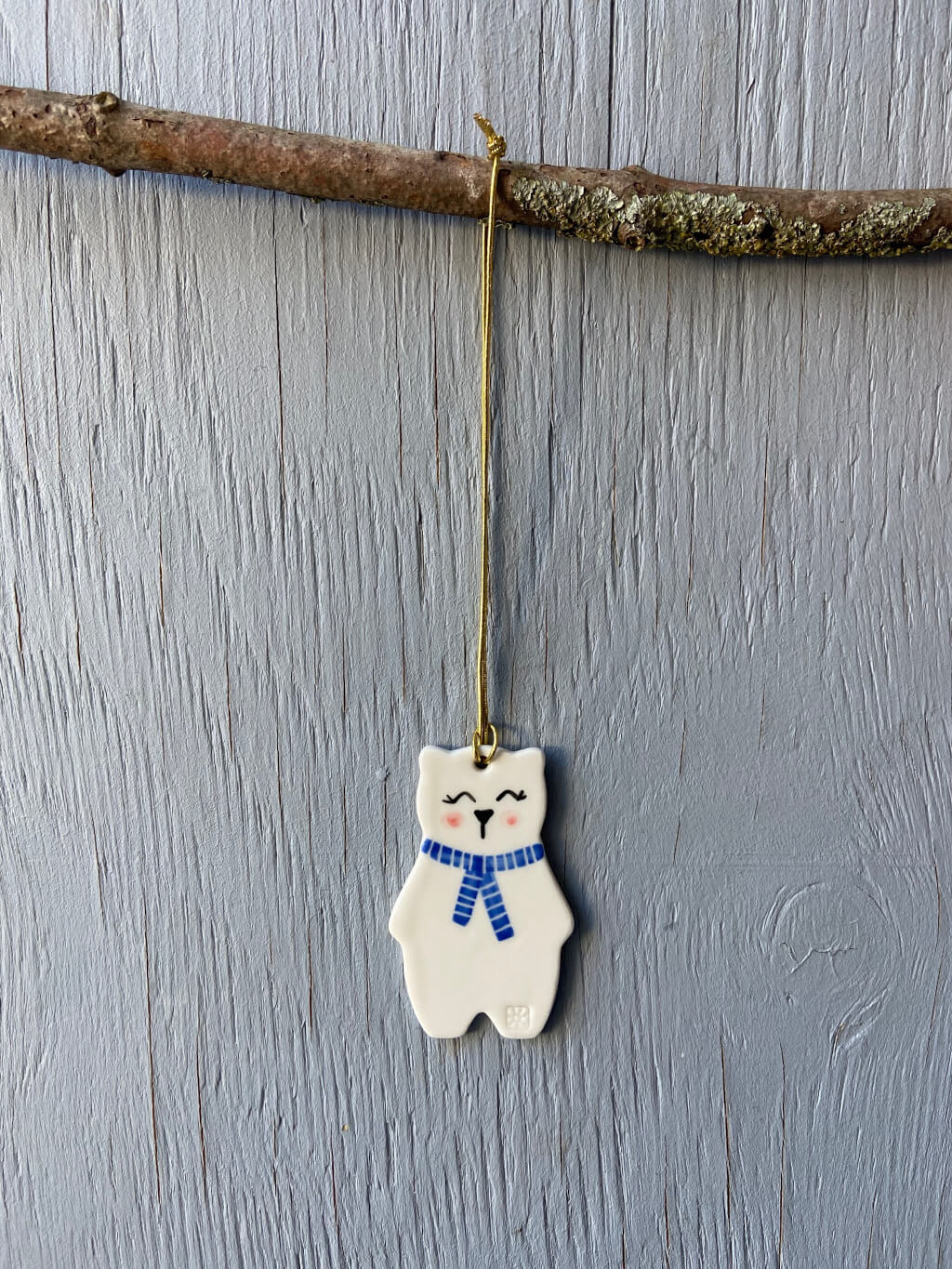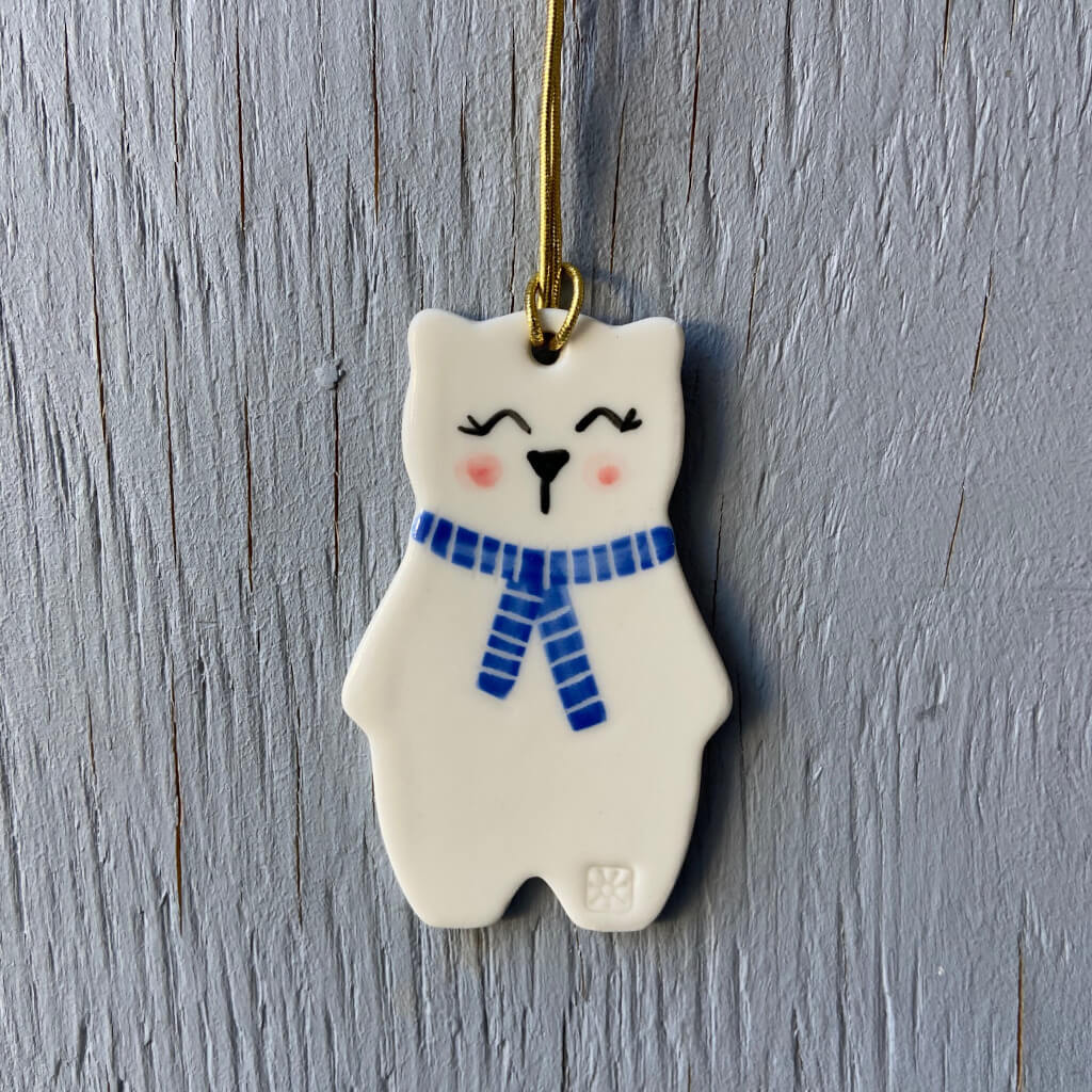 Bamse ornament i keramik smukt ophæng på en gren eller i et vindue.