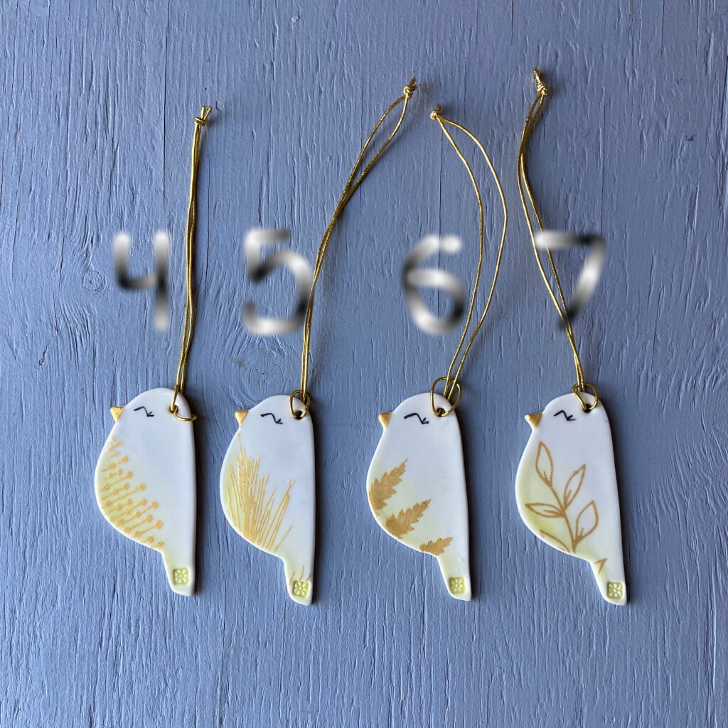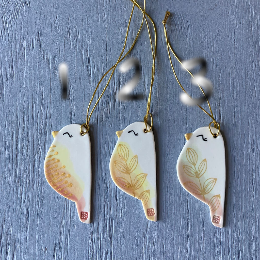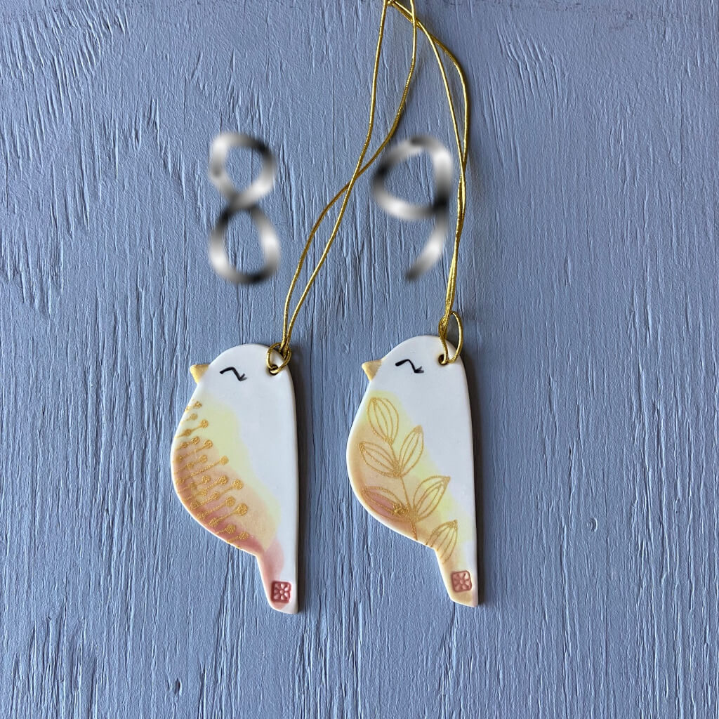 Fugle ornament i keramik smukt ophæng på en gren eller i et vindue.