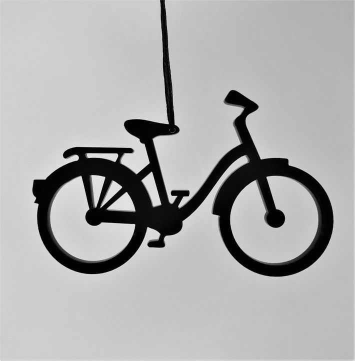 Enkelt og stilrent ornament, der er ideél i den moderne indretning. Ornamentet afspejler en klassisk traditionel cykel, som bruges af børn og voksne. Oplagt til vinduesophæng, på juletræet, en gren, om en lysestage, kun fantasien sætter grænser. Fås i farven hvid og sort.