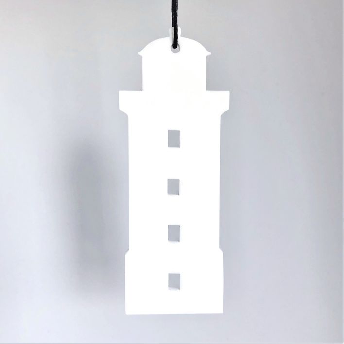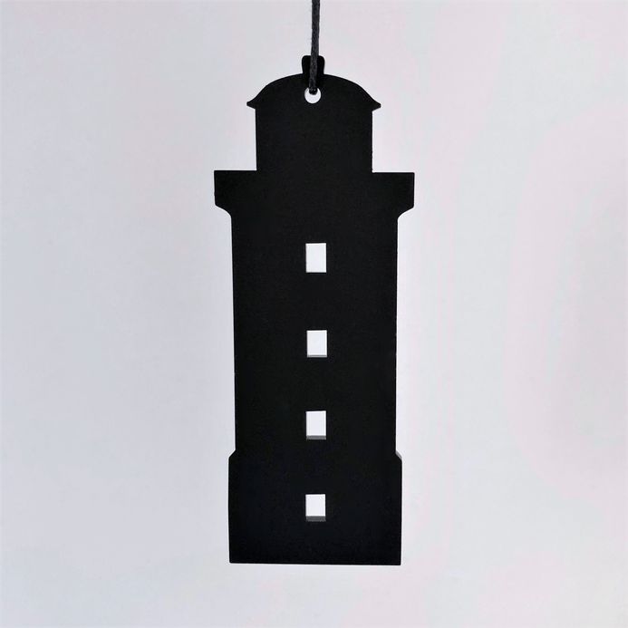 Enkelt og stilrent ornament, der er ideél i den moderne indretning. Ornamentet afspejler Hanstholm fyr. Oplagt til vinduesophæng, på juletræet, en gren, om en lysestage, kun fantasien sætter grænser. Fås i farven hvid og sort.