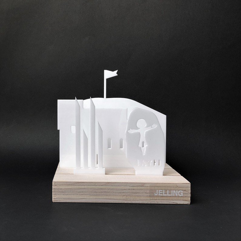 Enkel og stilren Block, der er ideél i den moderne indretning. Blocken afspejler seværdigheder i og omkring Jelling. Fås i farven hvid/træ.