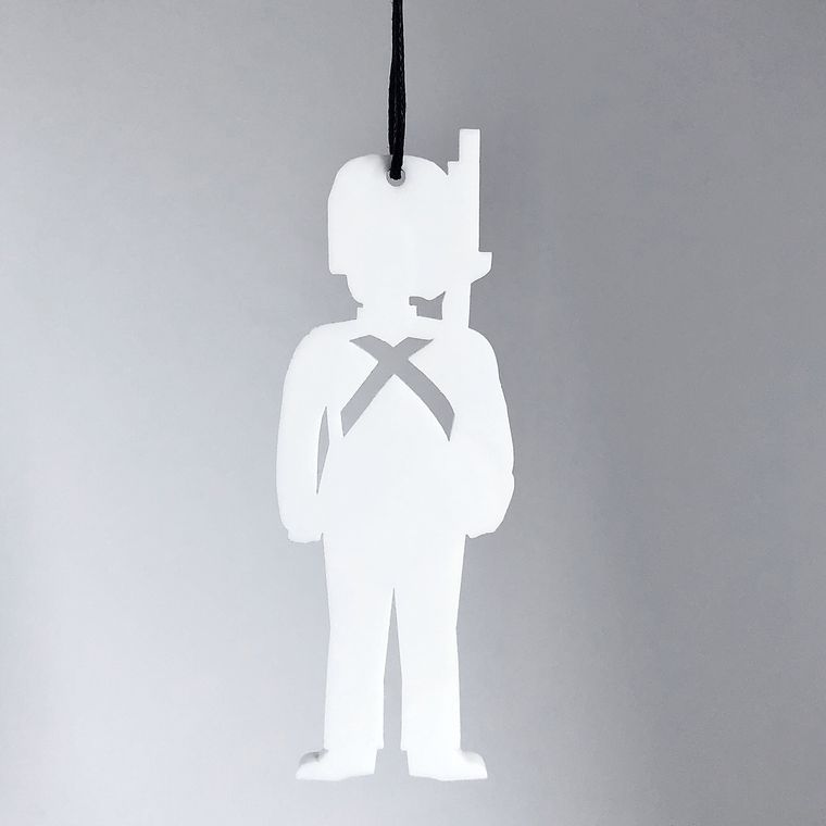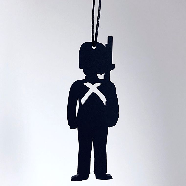 Enkelt og stilrent ornament, der er ideél i den moderne indretning. Ornamentet afspejler den Kongelige garder. Oplagt til vinduesophæng, på juletræet, en gren, om en lysestage, kun fantasien sætter grænser. Fås i farven hvid og sort.