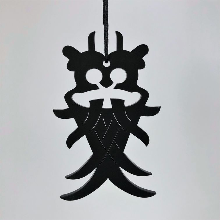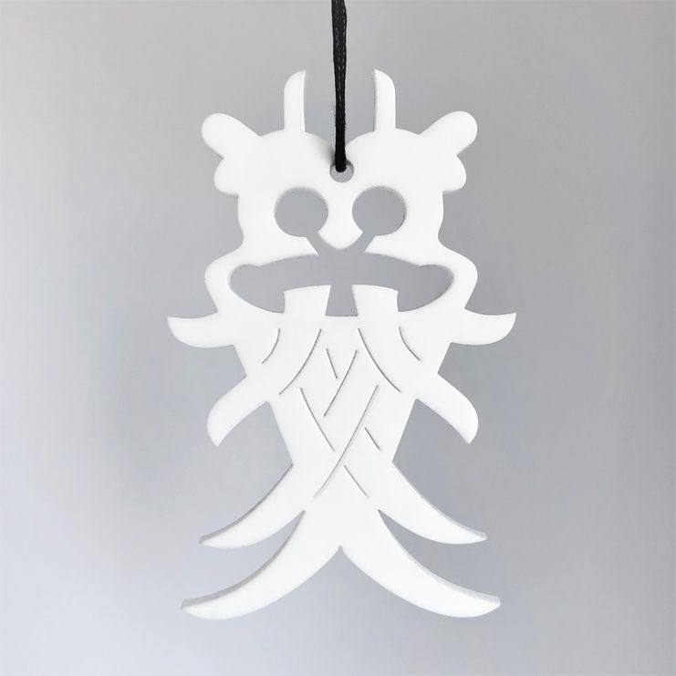 Enkelt og stilrent ornament, der er ideél i den moderne indretning. Ornamentet afspejler Odins maske fra den Nordiske mytologi. Oplagt til vinduesophæng, på juletræet, en gren, om en lysestage, kun fantasien sætter grænser. Fås i farven hvid og sort.