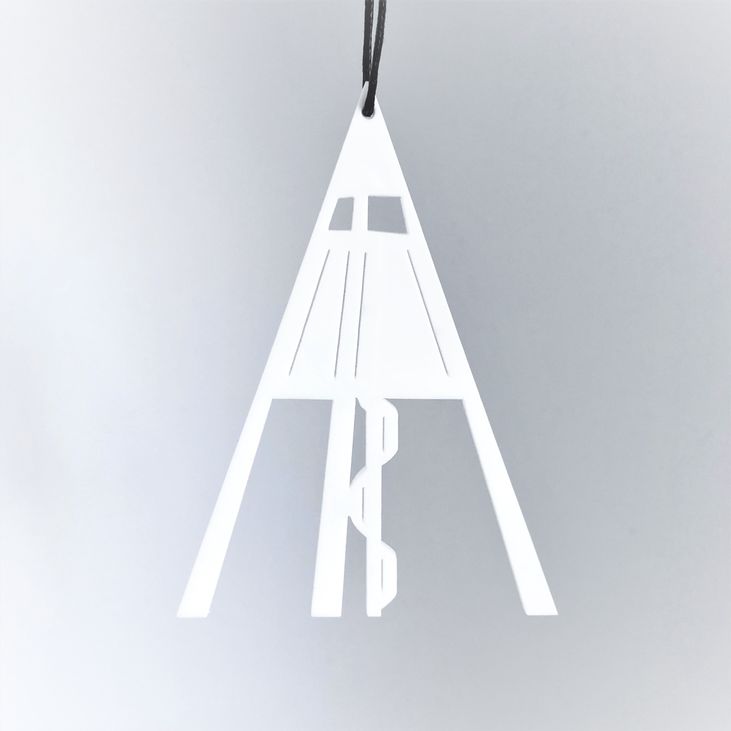 Enkelt og stilrent ornament, der er ideél i den moderne indretning. Ornamentet afspejler Vandtårnet i Svaneke. Oplagt til vinduesophæng, på juletræet, en gren, om en lysestage, kun fantasien sætter grænser. Fås i farven hvid og sort.