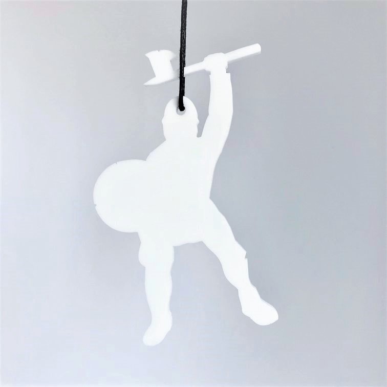 Enkelt og stilrent ornament, der er ideél i den moderne indretning. Ornamentet afspejler en dansk viking. Oplagt til vinduesophæng, på juletræet, en gren, om en lysestage, kun fantasien sætter grænser. Fås i farven hvid og sort.
