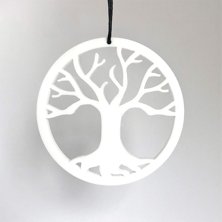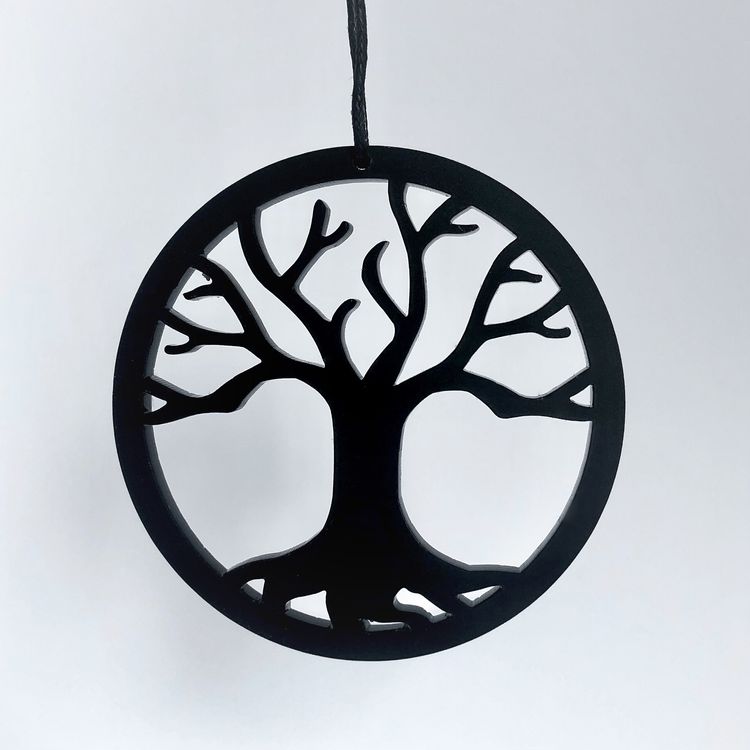 Enkelt og stilrent ornament, der er ideél i den moderne indretning. Ornamentet forestiller Yggdrasil Livets træ. Oplagt til vinduesophæng, på juletræet, en gren, om en lysestage, kun fantasien sætter grænser. Fås i farven hvid og sort.