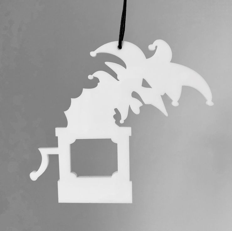 Enkelt og stilrent ornament, der er ideél i den moderne indretning. Ornamentet afspejler trolden fra H.C. Andersens eventyr Tinsoldaten. Oplagt til vinduesophæng, på juletræet, en gren, om en lysestage, kun fantasien sætter grænser. Fås i farven hvid og sort.