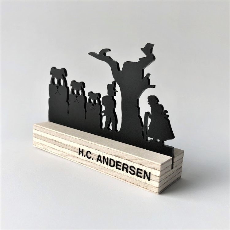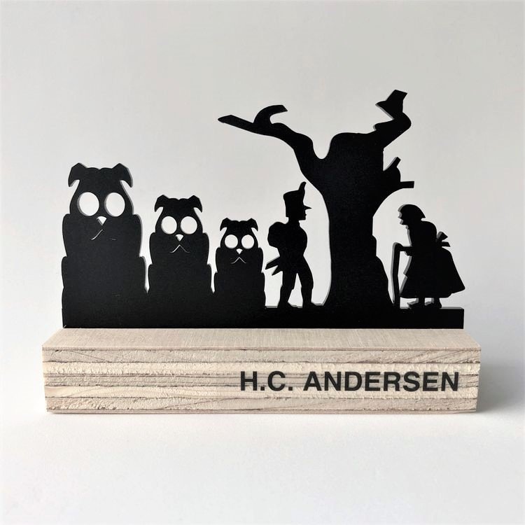 Enkel og stilren silhuet, der er ideél i den moderne indretning. Silhuetten afspejler HC Andersens eventyr Fyrtøjet. Smuk som gave, souvenir eller perfekt til børneværelset og barnebåd. Fås i farven sort/træ.