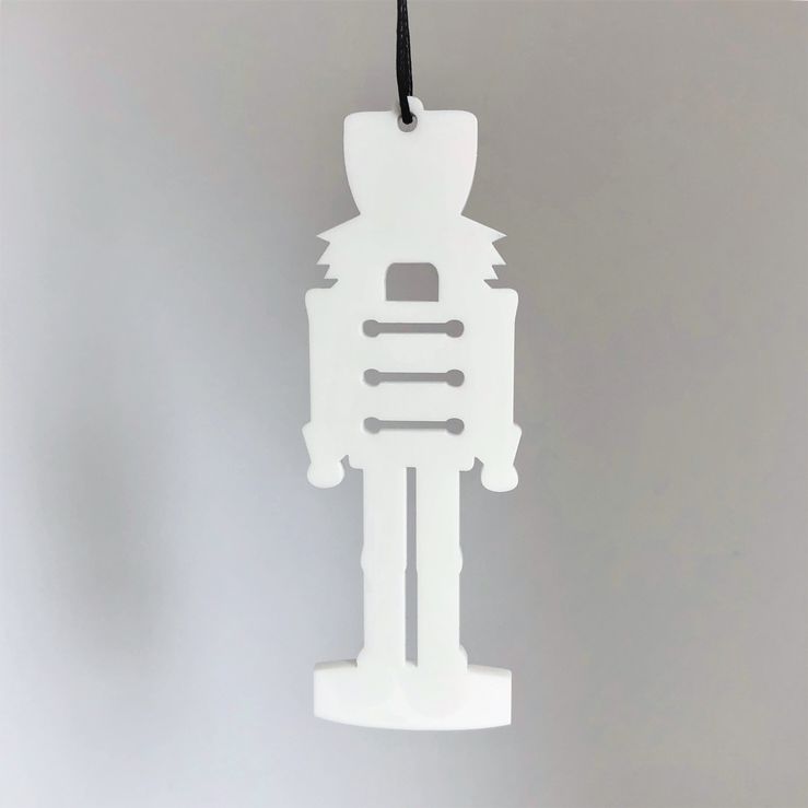 Ornament med enkelt og stilrent udtryk, der er ideél til den moderne jul. Ornamentet er formet som en klassisk nøddeknækker og er smuk på juletræet, i vinduet, en gren, om en lysestage, kun fantasien sætter grænser. Fås i farven hvid og sort.