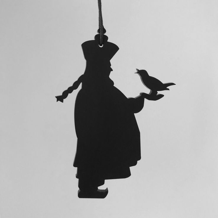 Enkelt og stilrent ornament, der er ideél i den moderne indretning. Ornamentet afspejler kejseren fra H.C. Andersens eventyr Nattergalen. Oplagt til vinduesophæng, på juletræet, en gren, om en lysestage, kun fantasien sætter grænser. Fås i farven hvid og sort.