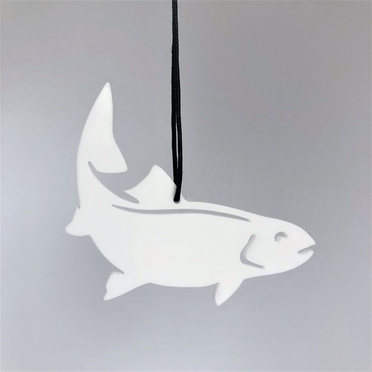Enkelt og stilrent ornament, der er ideél i den moderne indretning. Ornamentet afspejler en dansk fisk. Oplagt til vinduesophæng, på juletræet, en gren, om en lysestage, kun fantasien sætter grænser. Fås i farven hvid og sort.