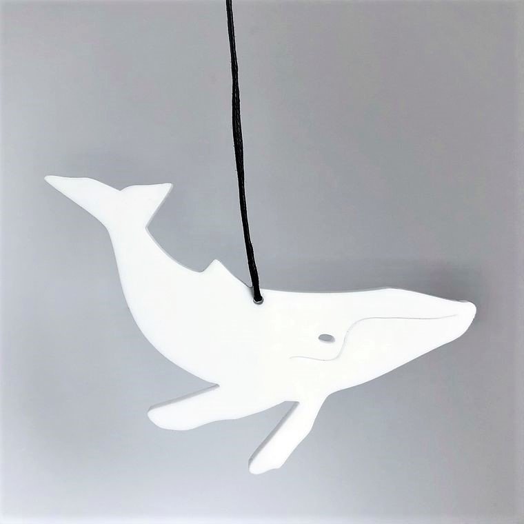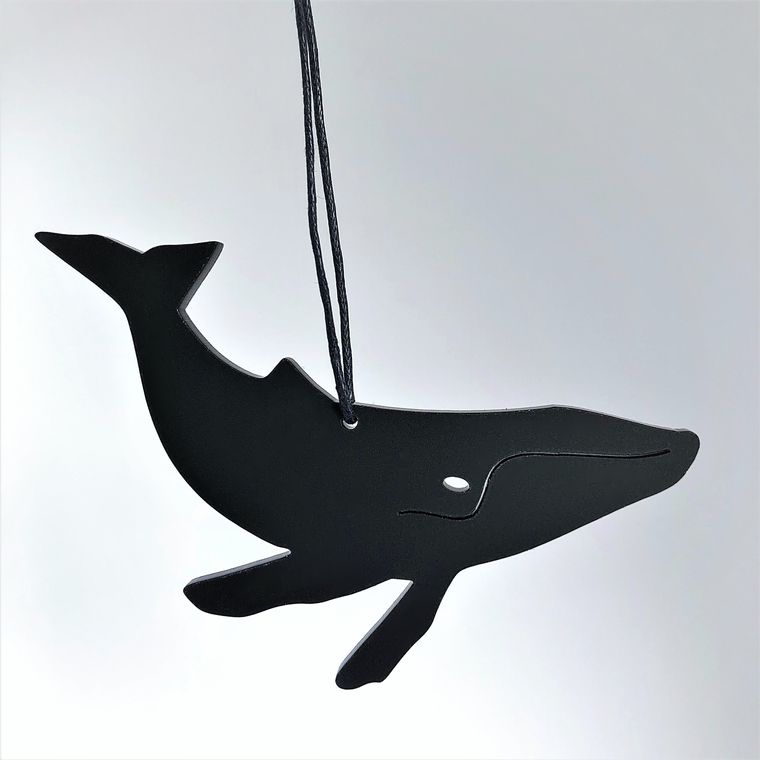 Enkelt og stilrent ornament, der er ideél i den moderne indretning. Ornamentet afspejler en Hval. Oplagt til vinduesophæng, på juletræet, en gren, om en lysestage, på børneværelset, kun fantasien sætter grænser. Fås i farven hvid og sort.