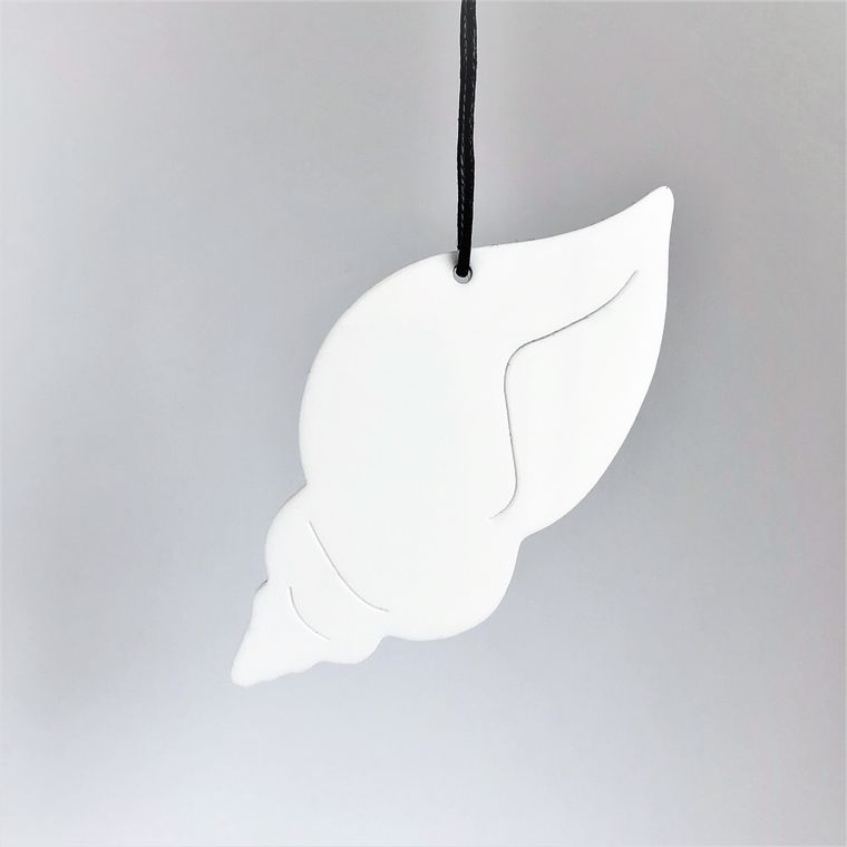 Enkelt og stilrent ornament, der er ideél i den moderne indretning. Ornamentet afspejler en Konkylie. Oplagt til vinduesophæng, på juletræet, en gren, om en lysestage, på børneværelset, kun fantasien sætter grænser. Fås i farven hvid og sort.